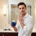 Elegant blue glass bottle with a minimal design
